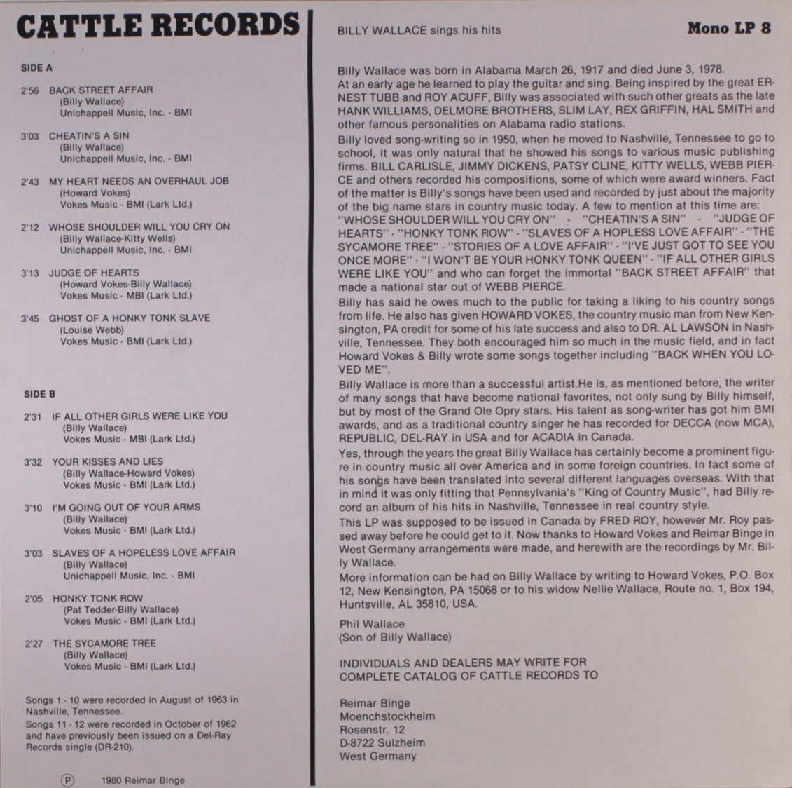 Der Nashville-Star Billy Wallace wurde am 26. März 1917 in Oklahoma City, Oklahoma, geboren und verstarb am 3. Juni 1978 in Huntsville, Alabama, erst 61-jährig, an den Spätfolgen eines Schlaganfalles.
