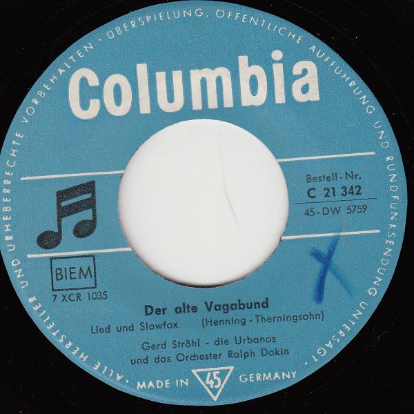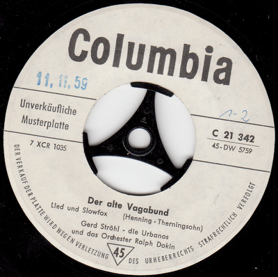 17.11.59 - Teilnahme am deutschen Schlagerfestival Wiesbaden/Radio Luxemburg mit "Der alte Vagabund", zugleich erste Schallplatte und verkaufsmäßig mit über 50.000 Exemplaren am erfolgreichsten,