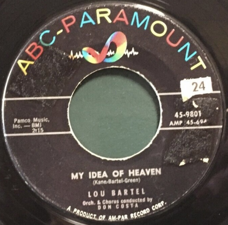 11 57....45-9877....LOU BARTEL Arranged and Conducted by DON COSTA..Blue Moon (AMP 45-3040)/I'm Gonna Kiss My Baby Goodnight (AMP 45-3041)