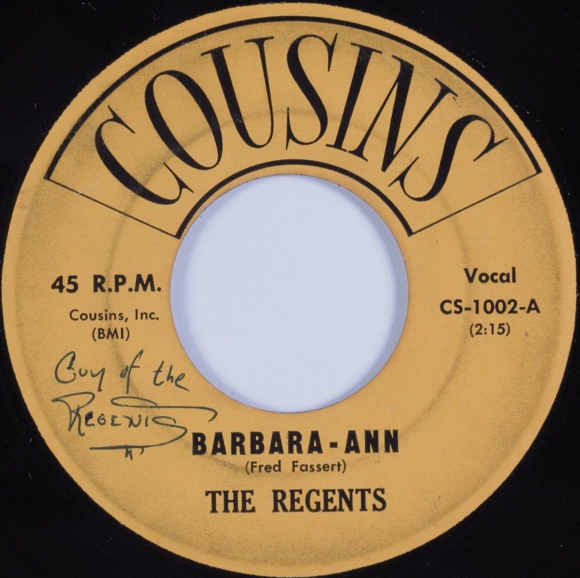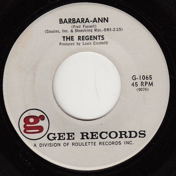 03 61....CS-1002-A....THE REGENTS..Barbara-Ann/-B....I'm So Lonely (dann GEE 1065)