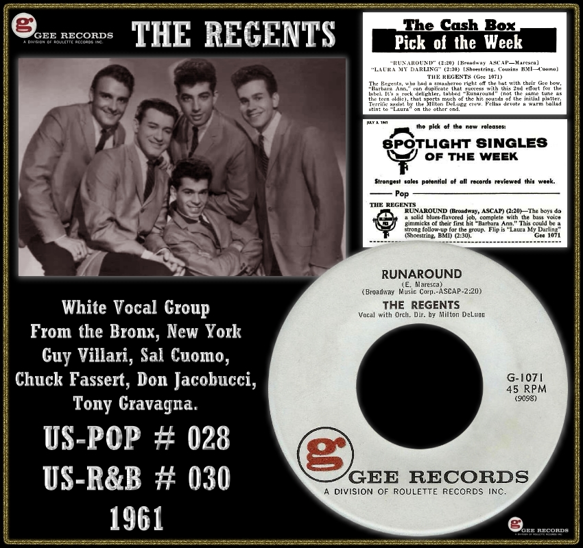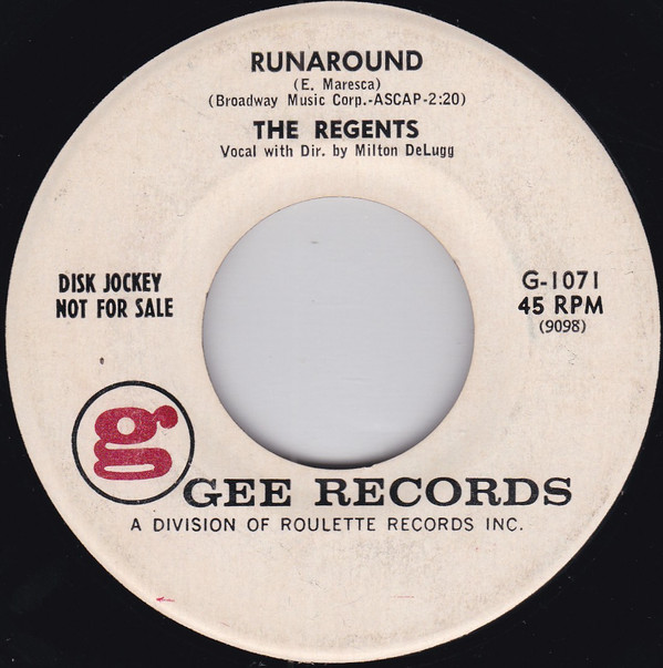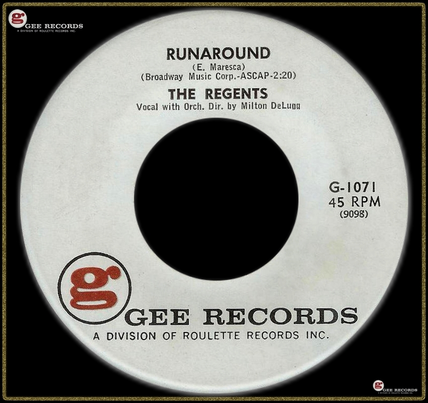 06 61....G-1071....THE REGENTS Vocal with Orch. Dir. by Milton DeLugg..Runaround (9098)/Laura My Darling (9099)