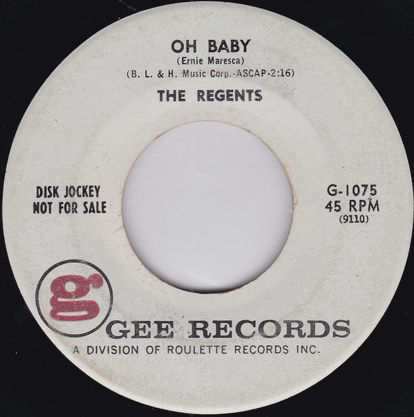 12 61....G-1075....THE REGENTS..Oh Baby (9110)/Lonesome Boy (9100)