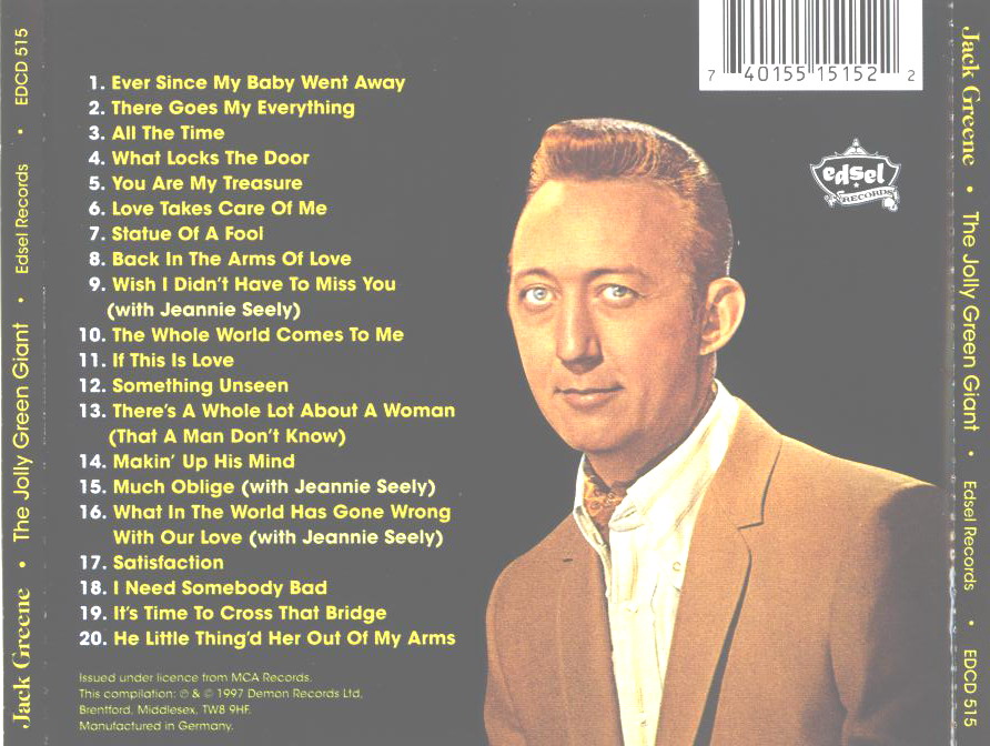 Jack Greene wurde am 7. Januar 1930 in Maryville, Tennessee, geboren. Als er noch nicht einmal 10 Jahre alt war, lernte er bereits Gitarre zu spielen und als Teenager hatte er seinen ersten Job beim Radio. Mit 18 trat er beim Tennessee Barn Dance des Senders WNOX in Knoxville, Tennessee, auf. Anschließend zog der nach Atlanta, um mit den Peach Street Cowboys auf Tournee zu gehen. Country-Fans wurden auf Greene aufmerksam, als er später als Schlagzeuger bei Ernest Tubbs Band The Texas Troubadours anheuerte.