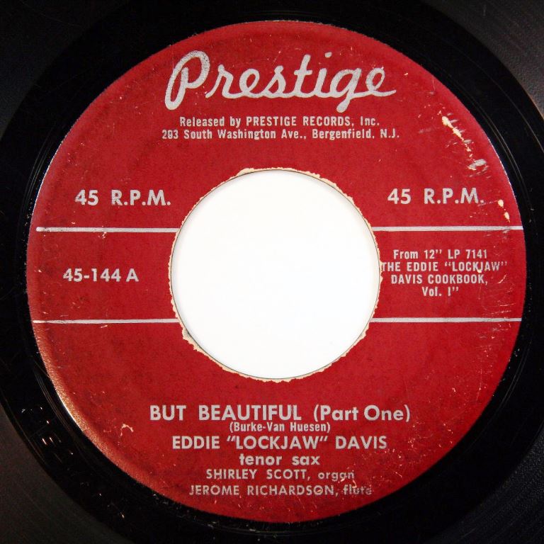 11 59....45-144 A....EDDIE "LOCKJAW" DAVIS, tenor sax SHIRLEY SCOTT, organ JEROME RICHARDSON, flute..But Beautiful (Part One)/ B….But Beautiful (Part Two)