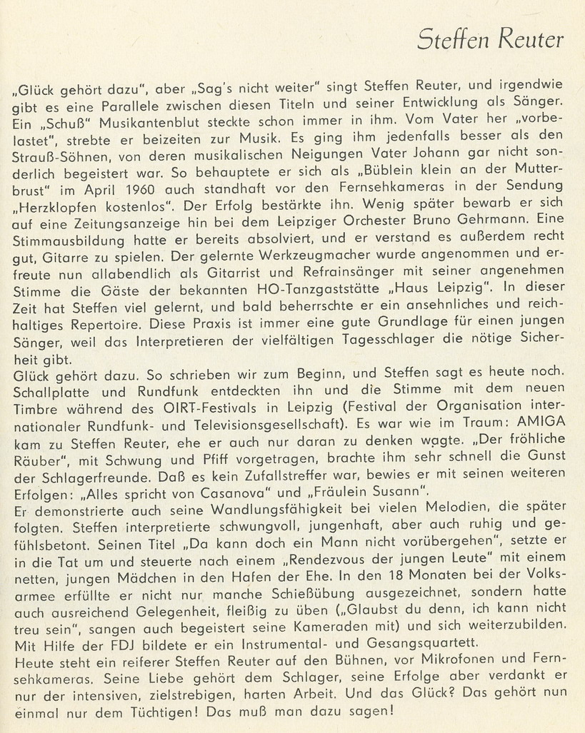 REUTER, STEFFEN * 1941 in Leipzig, Sänger,