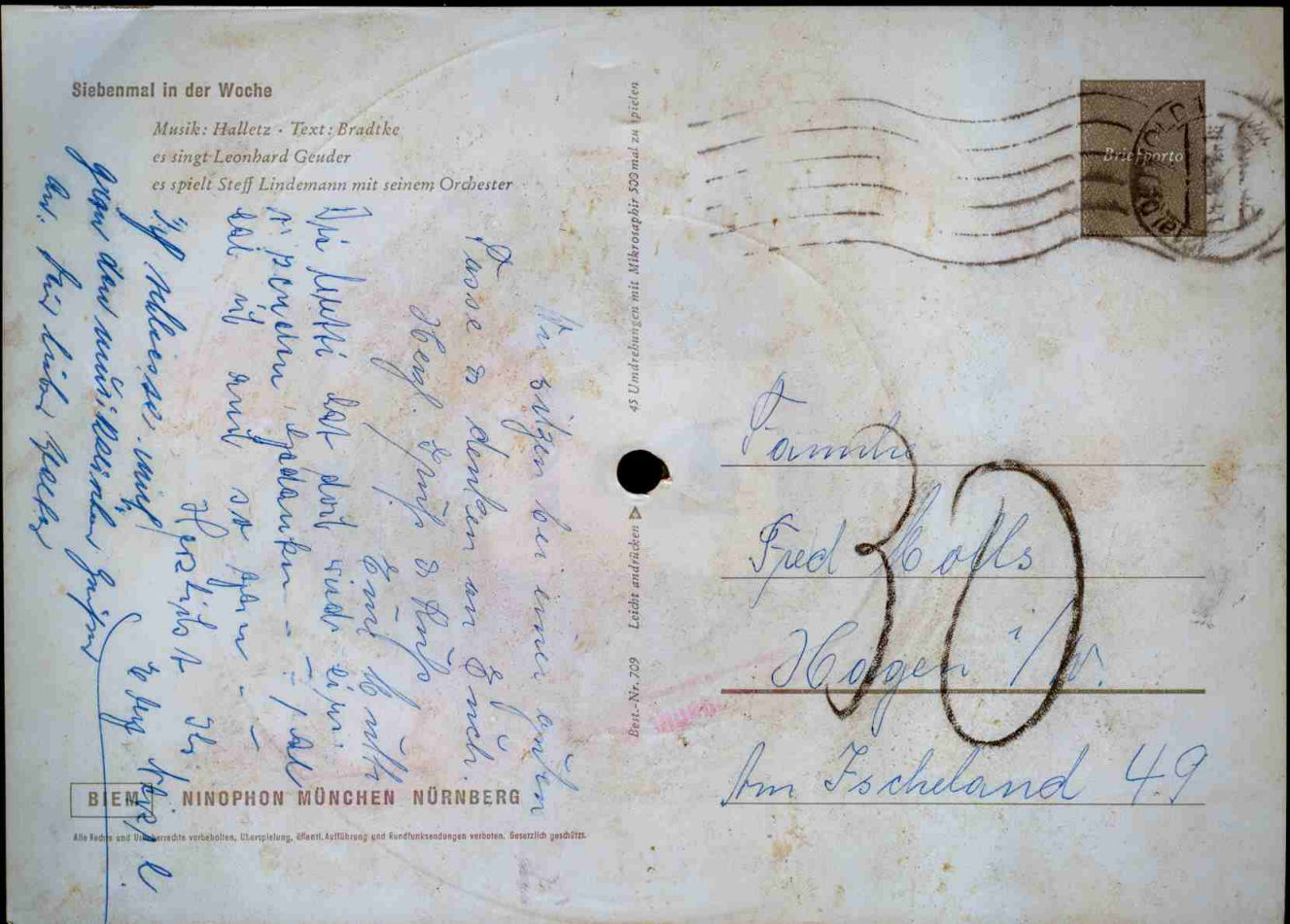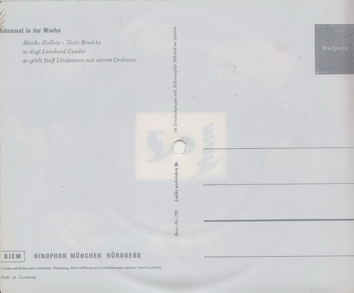 Er singt auf der abgebildeten Schall- Postkarte "Siebenmal in der Woche".