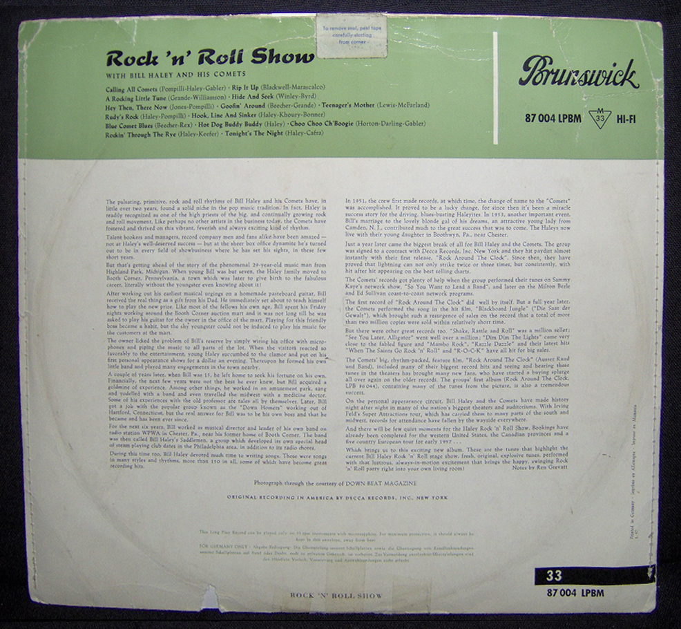 Bill Haley and his Comets - Rock'n'Roll Show / Brunswick 87 004 LPBM / BRD 1957 (laut Cover 1/57 - also Januar 1957)