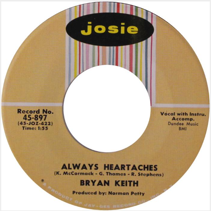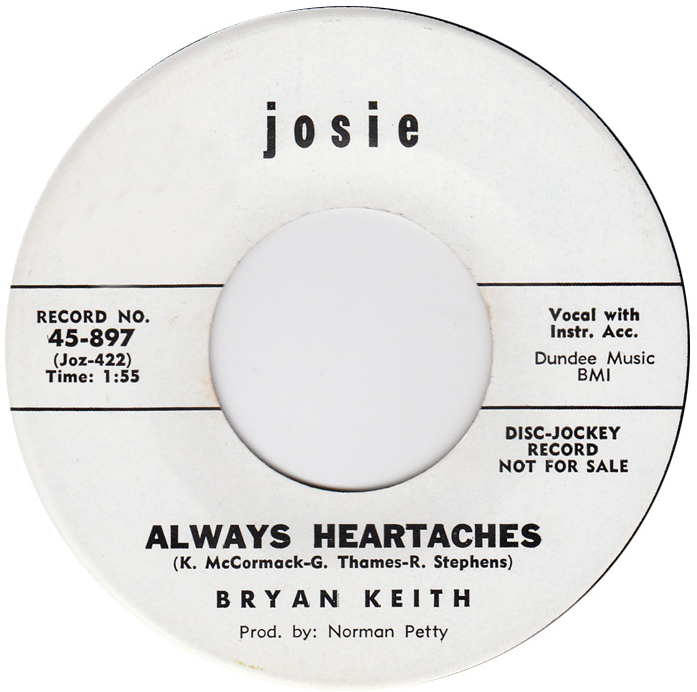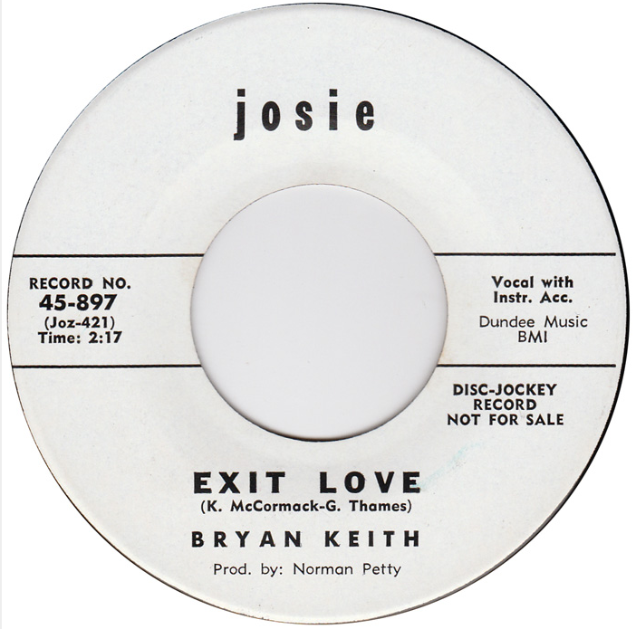 09 62....45-897....BRYAN KEITH..Exit Love (45-JOZ-421)/Always Heartaches (45-JOZ-422)