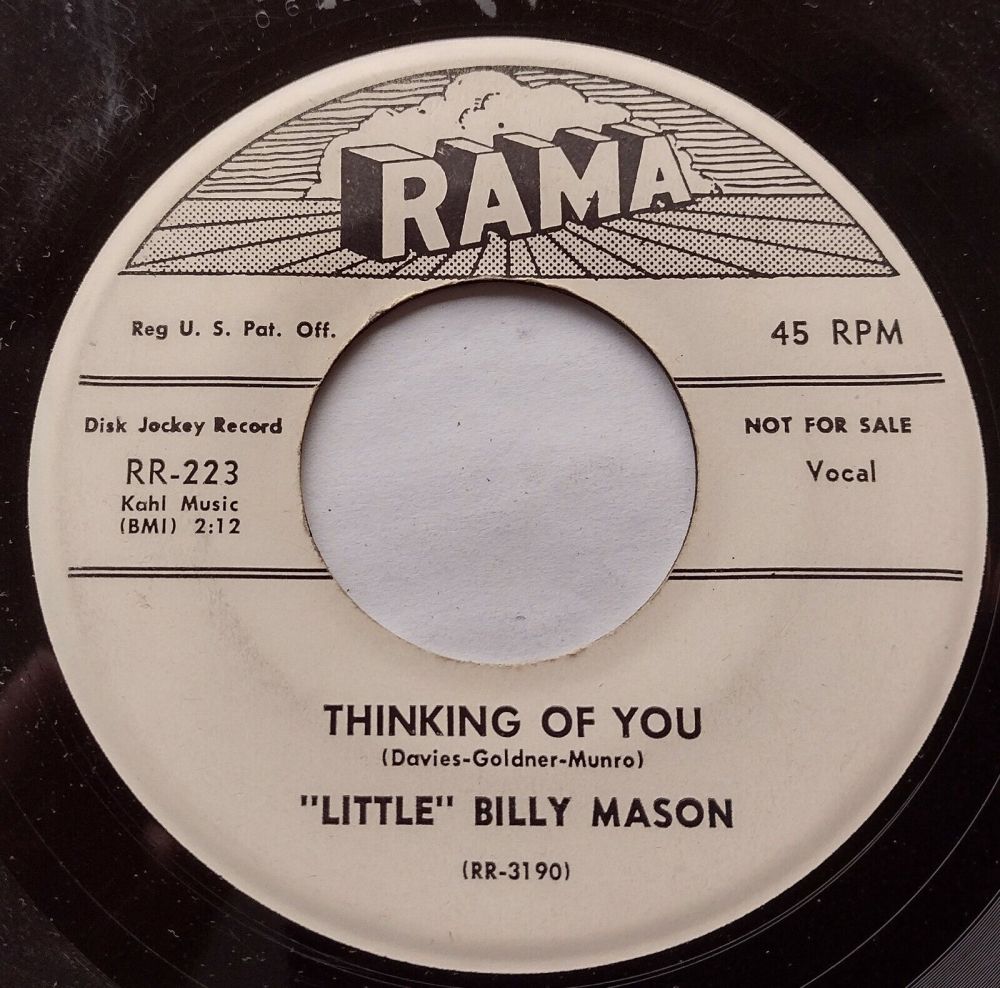 nichts Biographisches ist mir von "Little" Billy Mason bekannt. Er scheint zur Zeit seiner Aufnahmen für Rama tatsächlich noch sehr jung gewesen zu sein, seiner unausgereiften hohen Stimme nach zu schließen. Die Songs auf der folgenden Single sind moderate Rocker mit guter Gitarrenbegleitung. An dem Song auf der A-Seite hat George Goldner mitgeschrieben. Die Rückseite enthält natürlich den bekannten Jimmie-Davis-Klassiker.