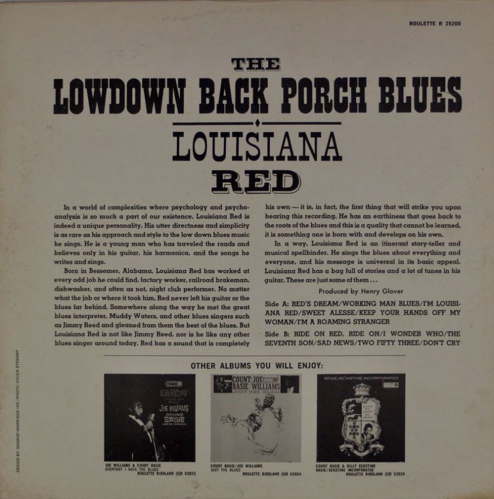Der Bluesmusiker Louisiana Red (Gitarre, Gesang) wurde am 23. März 1932 in Bessemer, Alabama, als Iverson Minter geboren und verstarb am 24. Februar 2012 in Hannover, Deutschland. Schon sehr früh verwaist, wuchs er in einem Waisenhaus und ab etwa 1940 bei seiner Großmutter in Pennsylvania auf. Seit er Muddy Waters kennenlernte, wollte er unbedingt Bluesmusiker werden, was aber durch Ableistung einer Zwangsarbeit, er wurde beim Einbruch erwischt, und durch Teilnahme am Korea-Krieg etwas verzögert wurde. Bereits ab 1949 soll es Aufnahmen von ihm geben und am 13. März 1952 hat er jedenfalls in Chicago bei CHESS aufgenommen, ab 1953 in Detroit und ab 1960 in New York City. Die meisten Aufnahmen wuden als LP verwertet oder blieben lange Zeit unveröffentlicht, Singles gab es wenige. Sein Künstlername war ein Spitzname den er wegen seiner Vorliebe für eine Chilli-Sosse gleichen Namens erhielt. Ab den Siebzigern tourte er auch viel durch Europa und ab 1981 ließ er sich in Hannover nieder, wo er bis zu seinem Tode lebte.