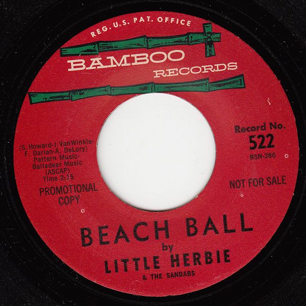 Ich glaube die Drei *) haben nur geblödelt. Eigentlich sind beide BAMBOO-Seiten sehr gute Instrumentals, nur das Gequatsche einschließlich des weiteren Lärms geht einem ziemlich auf den Nerv. Echt gesungen wird übrigens weder mit noch ohne Little Herbie, wer immer das auch ist. Bei "Crab Louie" wird nur geschrien "What (Do) You Want" und die Band schreit zurück "Crab Louie". Ich kann dazu kein Urteil abgeben, denn ich mag keinen Krabben-Salat. Auf der A-Seite wird von einem Mädchenchor, so klingt es jedenfalls, eine Melodie gesummt, also ganz ohne Text. Diese Mädels kann man aber kaum als Little Herbie bezeichnen. Little Herbie kann nur jene Person sein, die keinen einzigen Ton singt und offensichtlich den Schiedsrichter bei einem Ballspiel darstellt, ein Pfeiferl hat er jedenfalls auch dabei und er benützt es auch und gegen Ende gibt es ein Problem, denn der "Schiedsrichter" will den Beach Ball wieder haben, was er lautstark mit "I Want My Beach Ball" zur Kenntnis bring. Das führte dann offensichtlich zwei Jahre später zur neuen A-Seite auf CATCH. Die B-Seite dürfte hörmäßig gleich geblieben sein, wenn man der Matrix-Nummer trauen kann. Lediglich die Interpreten-Namen wurden bei der Veröffentlichung im Jahre 1964 geändert.