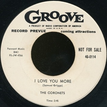 07 55....4G-0114....THE CORONETS..I Love You More (F5JW-4766)/Crime Doesn't Pay (F5JW-4767)