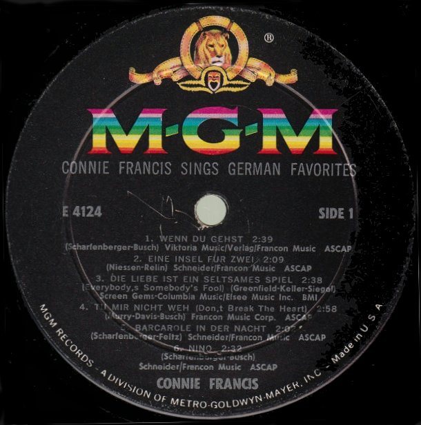 Deutsche MGM Single 61 056 -Connie Francis -Paradiso + Tu mir nicht weh -