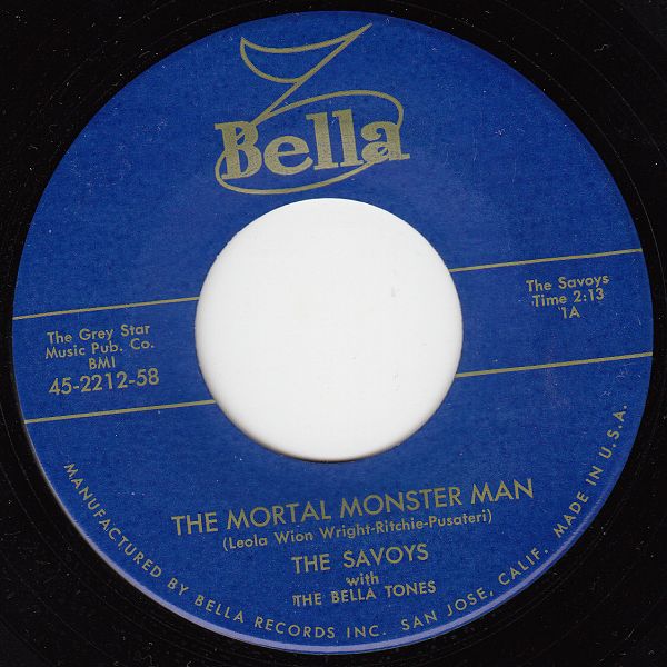 05 59....45-2212-58....THE SAVOYS with THE BELLA TONES..The Mortal Monster Man (1A)/45-2213-58....Watching The Sea (2B)