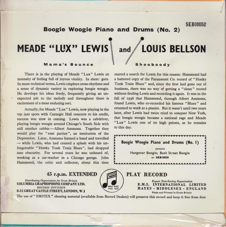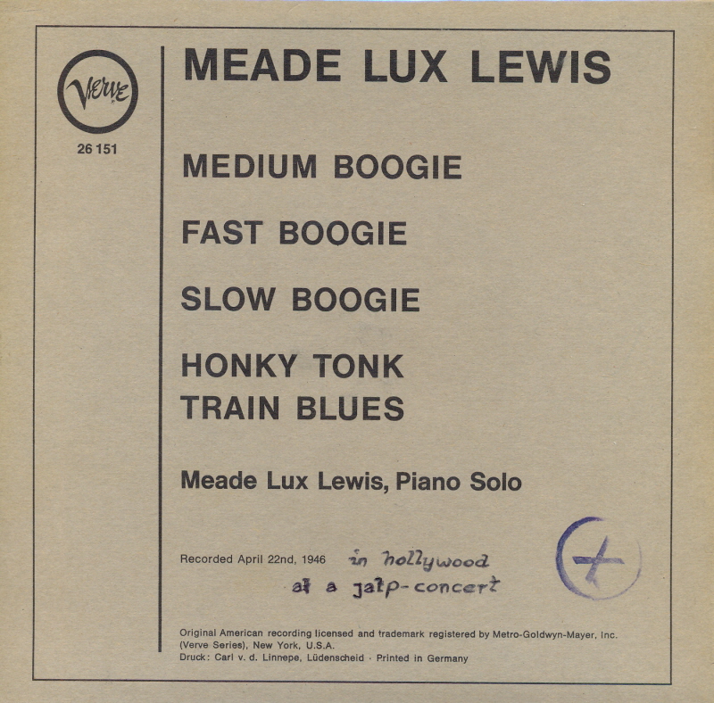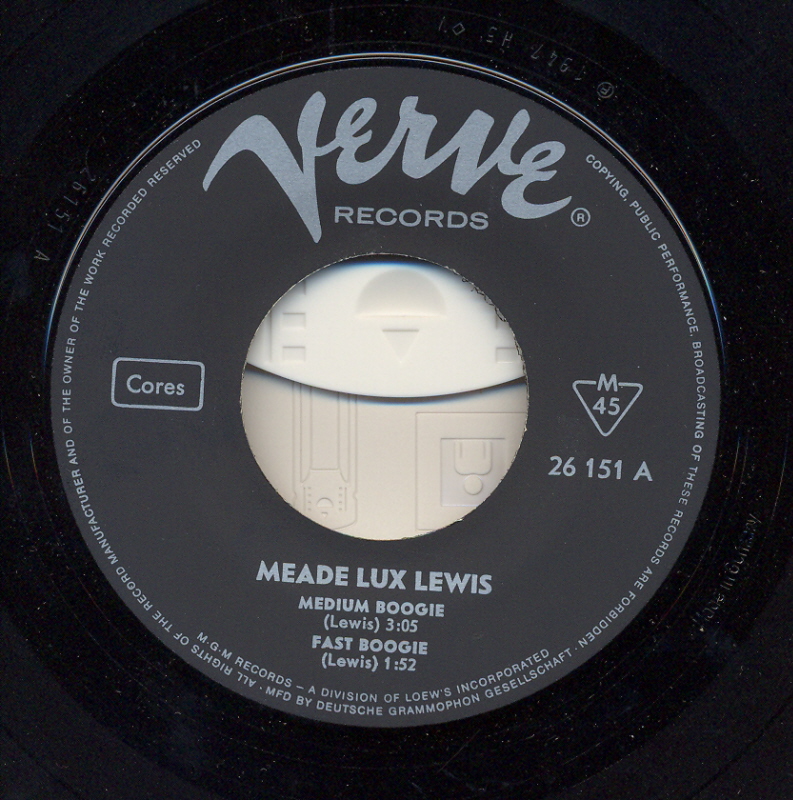 VERVE EP NR: 26151 - MEADE LUX LEWIS -Recording am 22. April 1946 by Metro Goldwyn