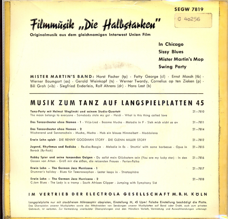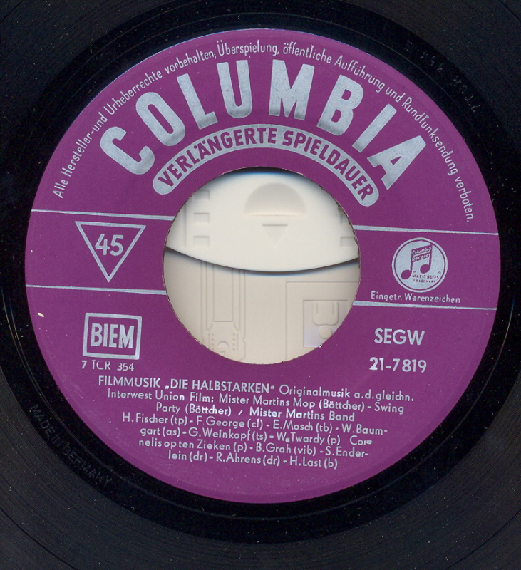 Deutsche Columbia im Vertrieb der Electrola-Köln - NR. SEGW 7819 -Originalmusik aus