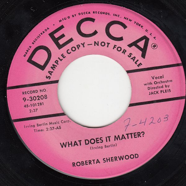 02 57....9-30208 ....ROBERTA SHERWOOD..What Does It Matter? (45 101281)/The Sham Rock (45 101282)