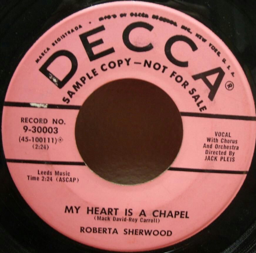 07 56....9-30003....ROBERTA SHERWOOD..(Prayer Is The Key To Heaven) Faith Unlocks The Door (45-100110)/My Heart Is A Chapel (45-100111)