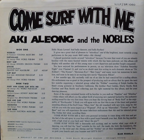 Aki Aleong (geb. am 19.12.1934 in Port of Spain, Trinidad) ist Schauspieler und Musiker (wenn ich auch nicht weiß, welches Instrument er spielt) in den USA. Nach den Licorice Twisters hat er ab 1963 mit den Nobles Surfmusik gemacht.