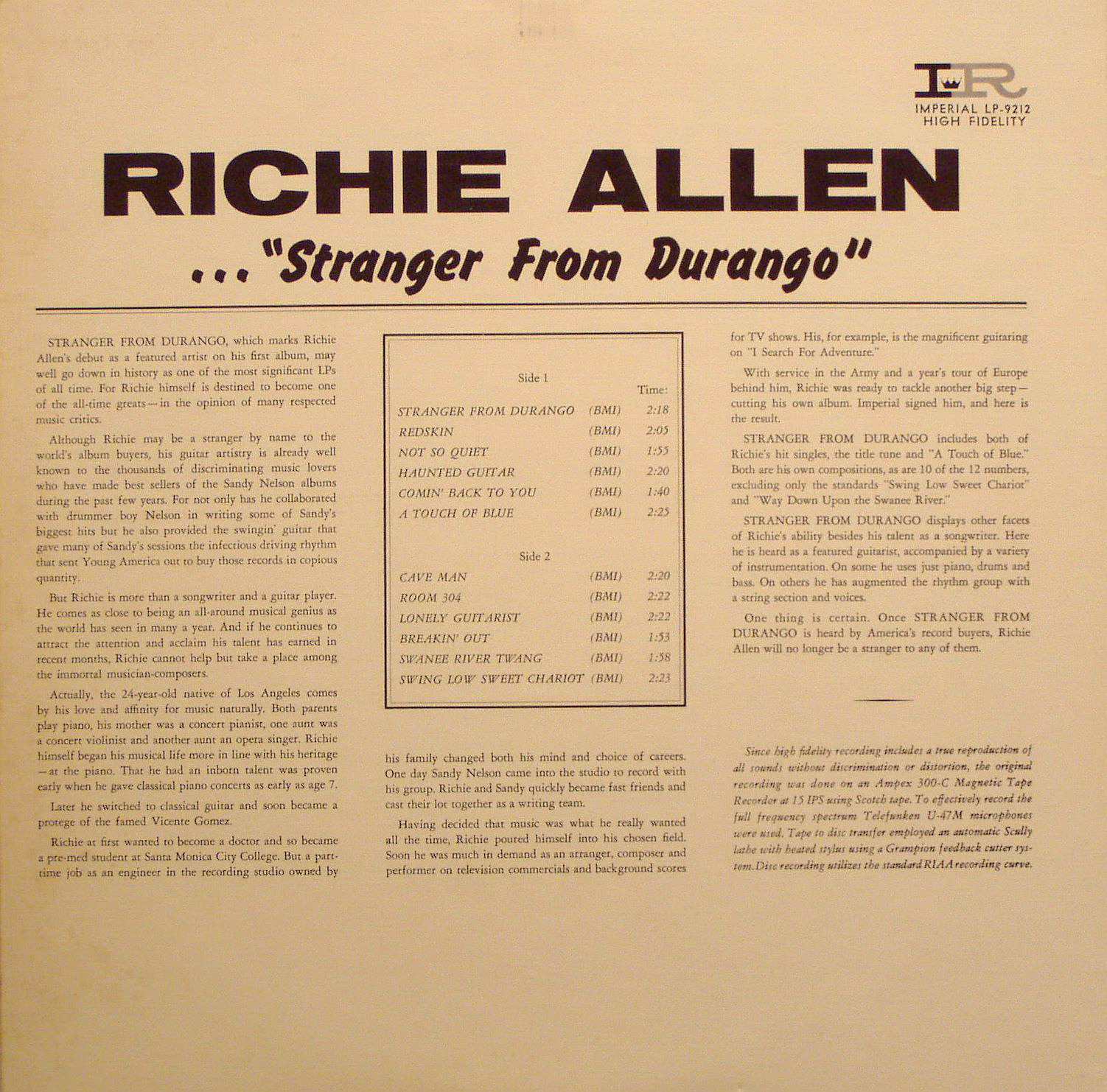Non Surf LP "Stranger From Durango", Imperial LP-12212