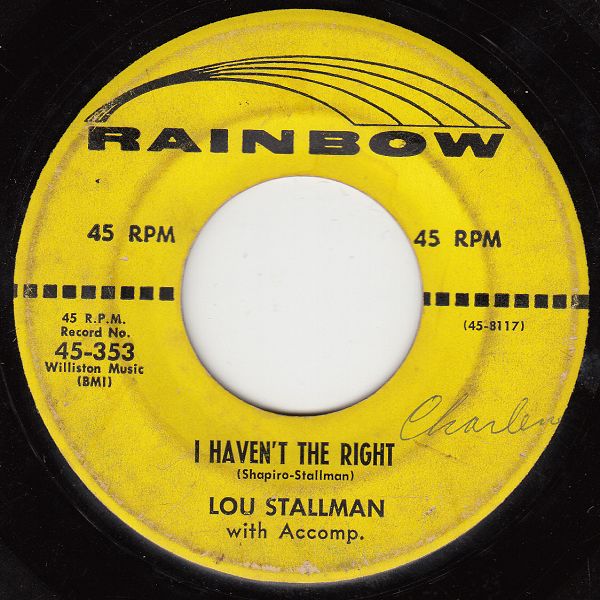 Der bekannte Komponist Lou Stallman arbeitete oft auch im Team wie beispielsweise mit Sid Jacobson oder Joe Shapiro und schrieb in der Regel für andere Interpreten. Manchmal war er aber auch als Interpret tätig, aber normalerweise im Hintergrund wie zum Beispiel bei der Ivy Three. Zur Zeit ist mir lediglich eine Single bekannt, wo er hochoffiziell als Interpret aufscheint und das war im Sommer 1956.