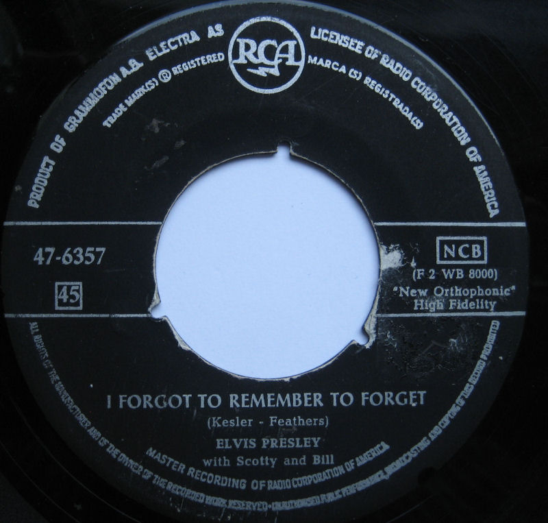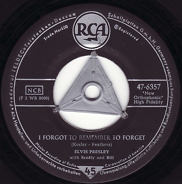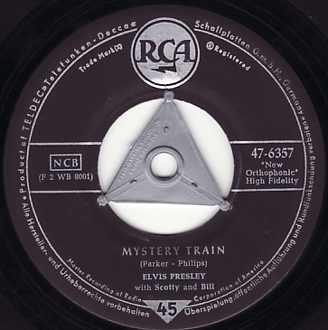 Elvis Presley's version of "Mystery Train" was first released on August 20, 1955 as the B-side of I Forgot to Remember to Forget (Sun 223). It was again produced by Sam Phillips at Sun Studios, and featured Presley on vocals and rhythm guitar, Scotty Moore on lead guitar and Bill Black on bass. RCA Victor rereleased this recording in December of 1955 (#47-6357) after acquiring it as part of a contract with Presley. This version of the song peaked at #11 on the national Billboard Country Chart.