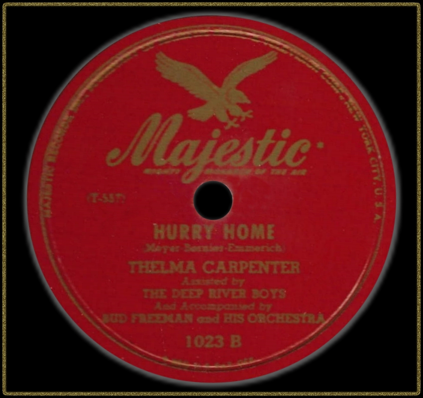 12 45....1023....THELMA CARPENTER Assisted by THE DEEP RIVER BOYS and Accompanied by BUD FREEMAN and HIS ORCHESTRA..Hurry Home (T-557)/THELMA CARPENTER With Orchestra directed by Earl Sheldon..Just A-Sittin' And A-Rockin' (T-558)