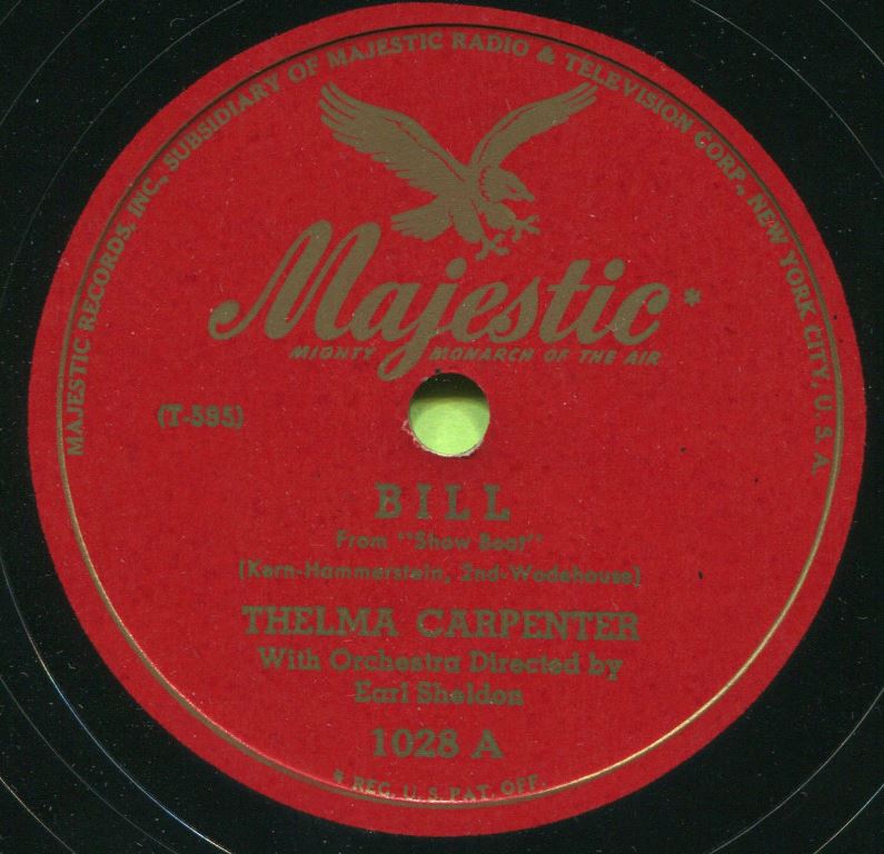 01 46....1028 A....THELMA CARPENTER With Orchestra Directed by Earl Sheldon..Bill (T-595)/ B….Can't Help Lovin' Dat Man (T-597)