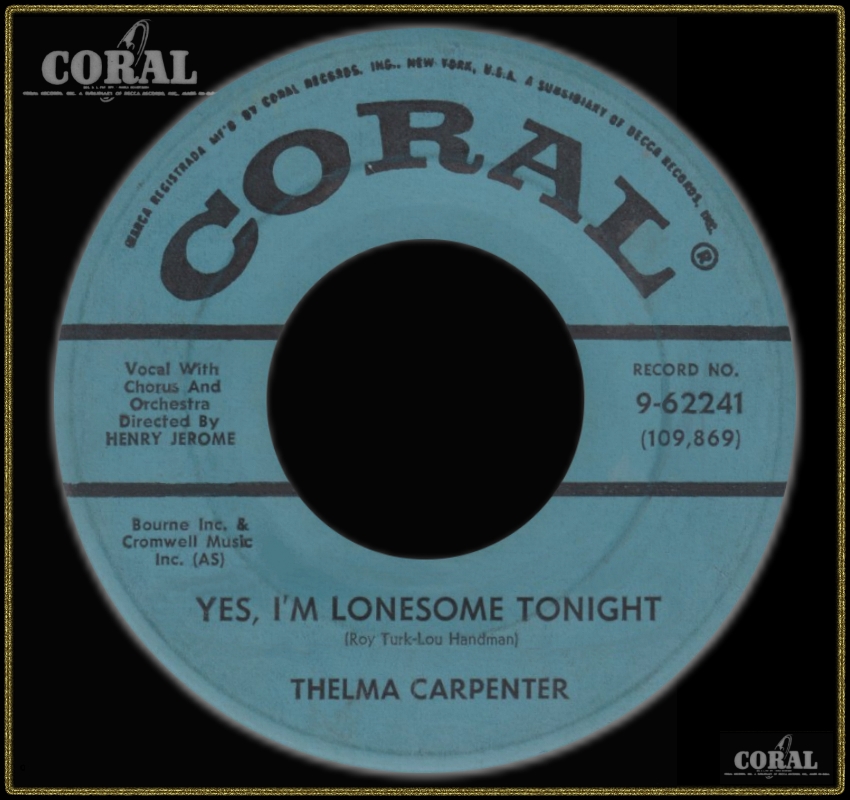 12 60....9-62241....THELMA CARPENTER..Gimme A Little Kiss (Will Ya, Huh?) (109,871)/Yes, I'm Lonesome Tonight (109,869)
