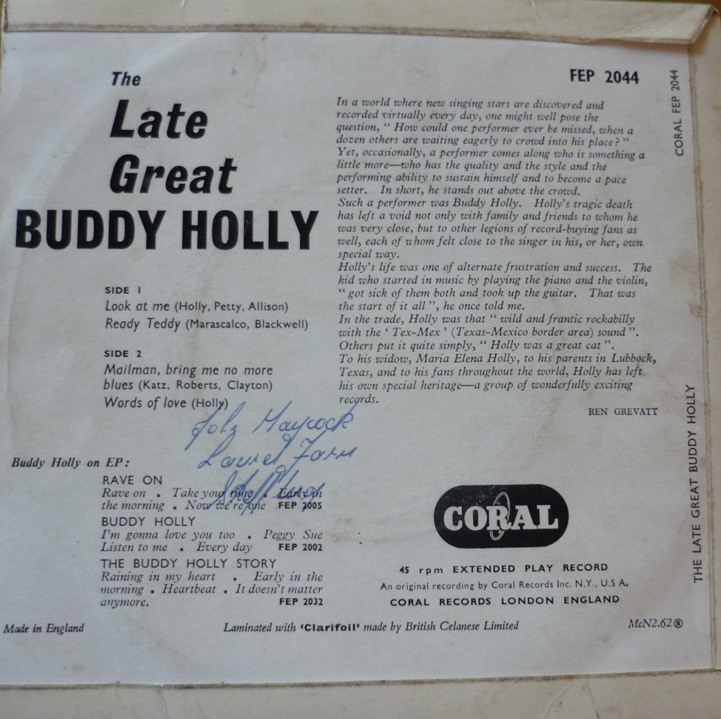 Die Rückseite der Hülle gibt Februar 1962 an.. Anhänge an diesem Beitrag Dateiname: Holly,Buddy124d.jpg Dateigröße: 452.71 KB Titel: Holly,Buddy124d.jpg Heruntergeladen: 356 Dateiname: Holly,Buddy124c.jpg Dateigröße: 585.32 KB Titel: Holly,Buddy124c.jpg Heruntergeladen: 380 Dateiname: Holly,Buddy124b.jpg Dateigröße: 604.23 KB Titel: Holly,Buddy124b.jpg Heruntergeladen: 372