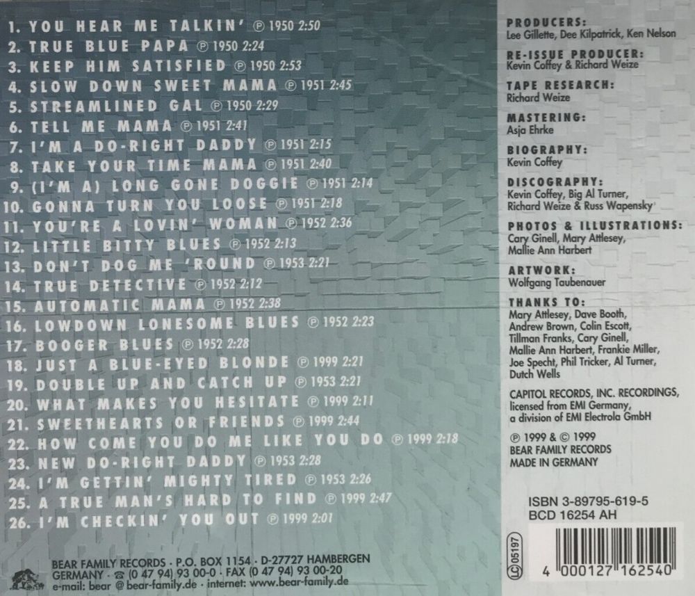 Leon Chappels Nachkriegsaufnahmen verbinden diesen Hintergrund mit dem East-Texas Gefühl für einfachen, lowdown Blues. Das Ergebnis fasziniert Country-, Western Swing-, Hillbilly Boogie- und Rockabilly Fans immer noch, nach fast 50 Jahren. Auf einer CD von bfr sind seine kompletten Capitol- Aufnahmen, inklusive sechs bisher unveröffentlichter Titel enthalten. Klassiker wie “True Blue Papa“ (später wieder aufgenommen von Frankie Miller), “True Detective“ und “Double Up And Catch Up“ runden die CD ab.