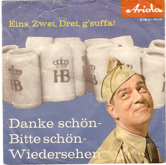 Ich habe das Cover der Single von Willi Schmid ,Ariola 35100,Danke schön -Bitte schön - Wiedersehn / Eins,Zwei,Drei,g'suffa auf einen meiner Raubzüge gefunden.Die Person auf dem Cover gleicht der