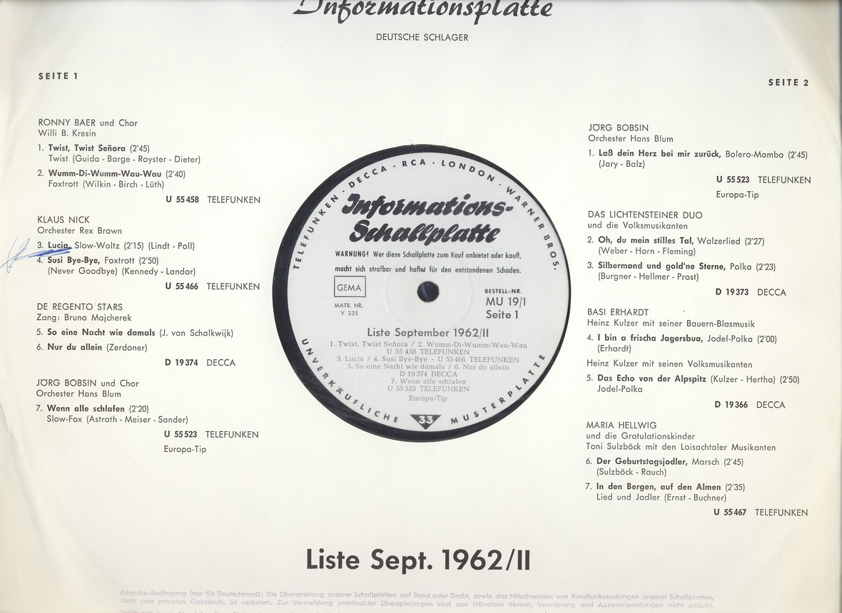 RONNY BAER durfte auf Telefunken mit der deutschen Fassung von
