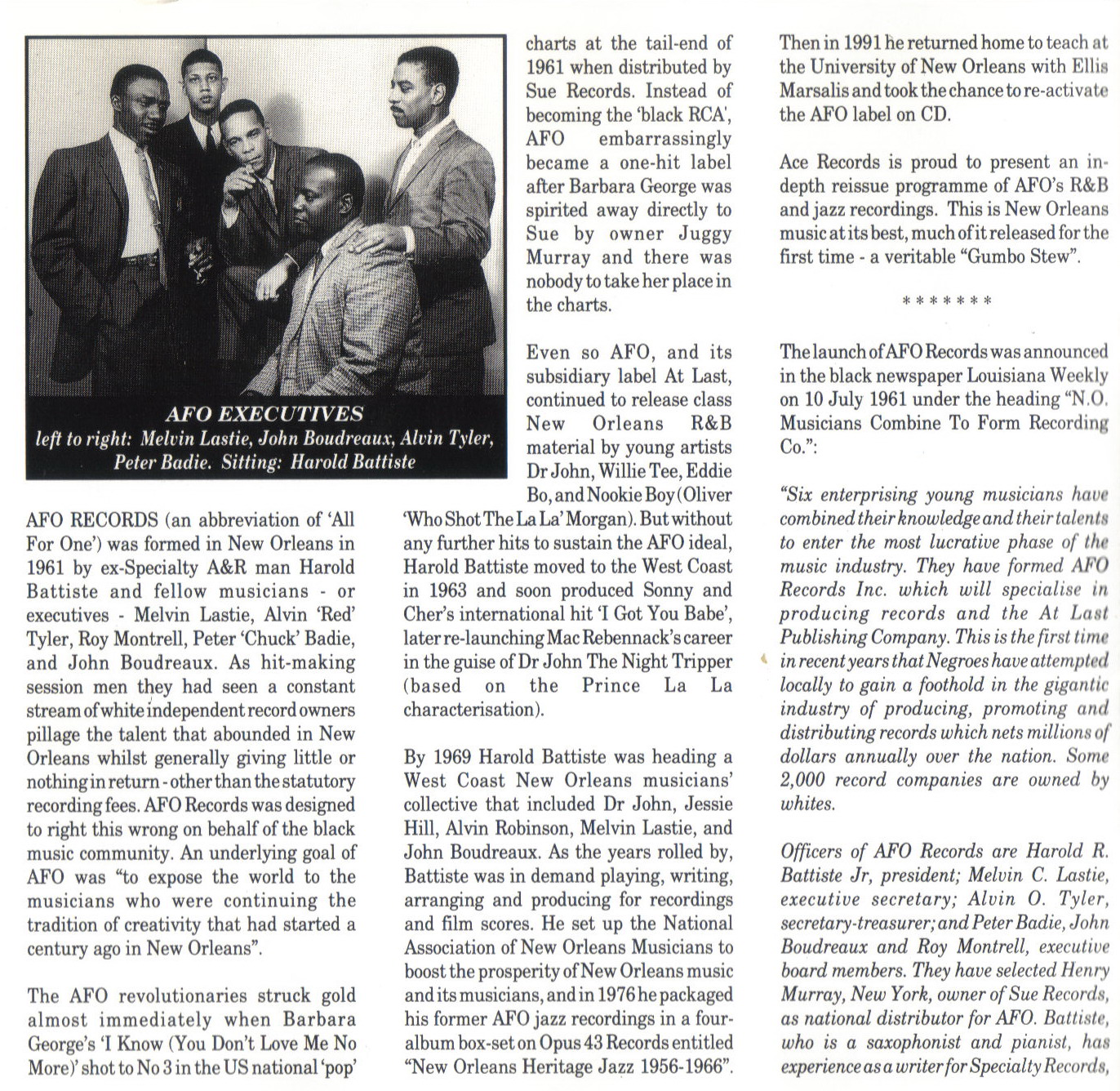 Er gründete 1961 in New Orleans A.F.O. Records, das mit Barbara Georges "I Know" seinen größten Hit hatte, und arrangierte - nach seinem Umzug an die Westküste - Sonny & Chers Hit "I Got You Babe". 1967/68 kreierte er mit Mac Rebennack die Kunstfigur "Dr. John The Night Tripper", die Rebennack fürderhin bis heute personifiziert.