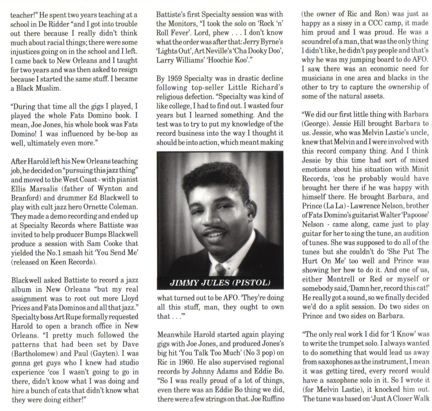 Harold Battiste Jr. (geb. am 28.10.1931 in New Orleans, Lousiana, gest. am 19.06.2015 ebenda) war Musiker, Songwriter, Arrangeur und Produzent.