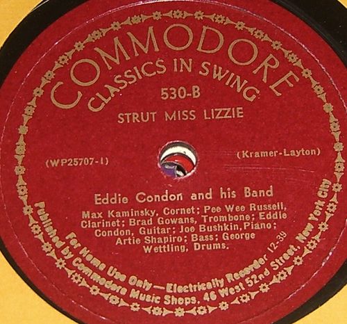07 50 03 51....9-27106....Album No. 9-217 (8 Sides—5) EDDIE CONDON AND HIS ORCHESTRA “Wild Bill" Davison-trumpet; “Cutty" Cutshell-trombone; "Peanuts" Hucko-clarinet; “Buzzy" Drootin-drums; Jack Lesberg-bass; Gene S chroeder-piano; Eddie Condon-guitar..The Yellow Dog Blues (45-76475)/(8 Sides—6) EDDIE CONDON AND HIS ORCHESTRA “Wild Bill" Davison-trumpet; “Cutty" Cutshell-trombone; "Peanuts" Hucko-clarinet; “Buzzy" Drootin-drums; Jack Lesberg-bass; Gene S chroeder-piano; Eddie Condon-guitar - Vocal Chorus by Jimmy Atkins..Sweet CiderTime, When You Were Mine (45-75990)