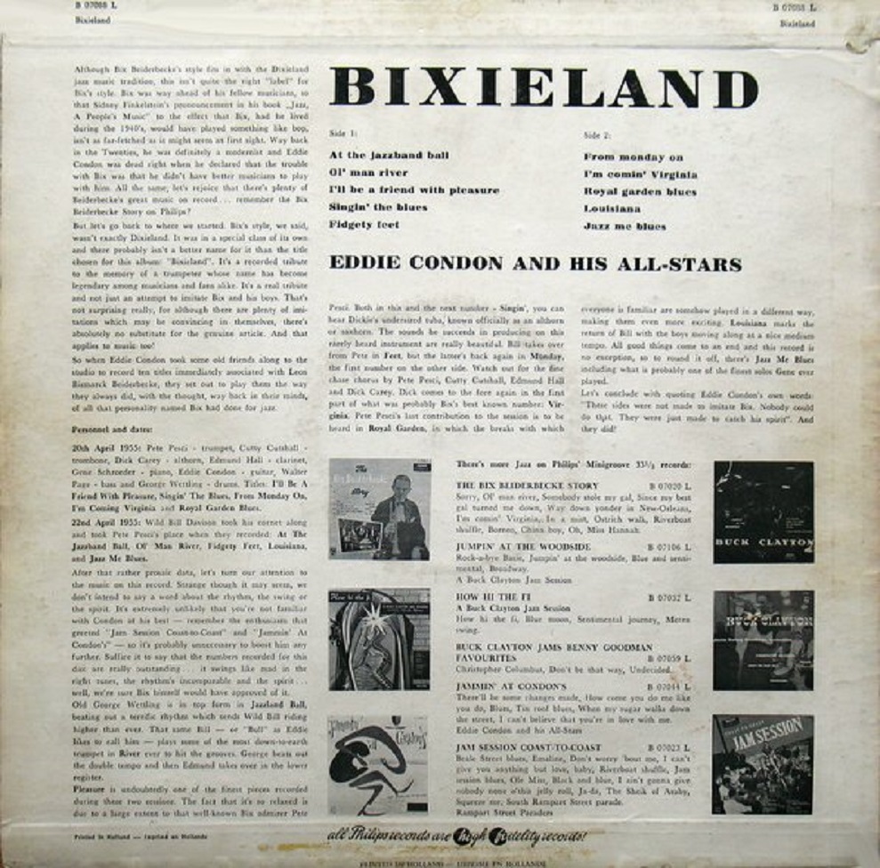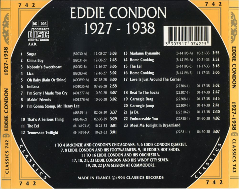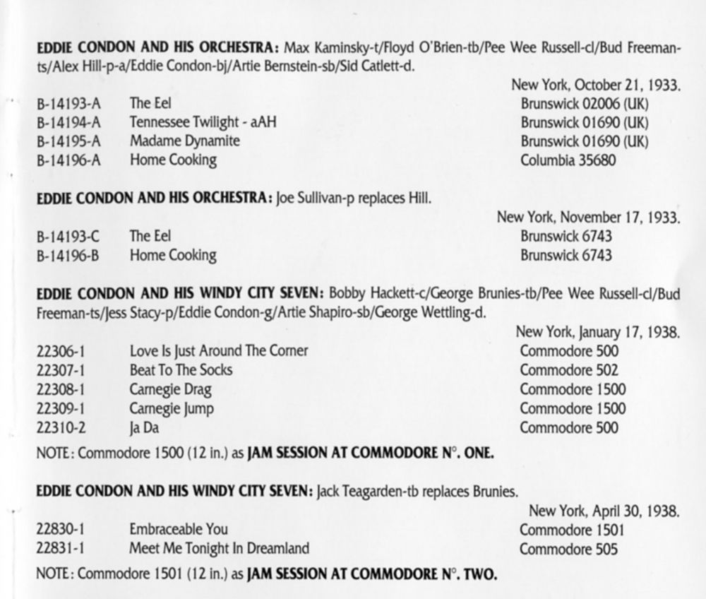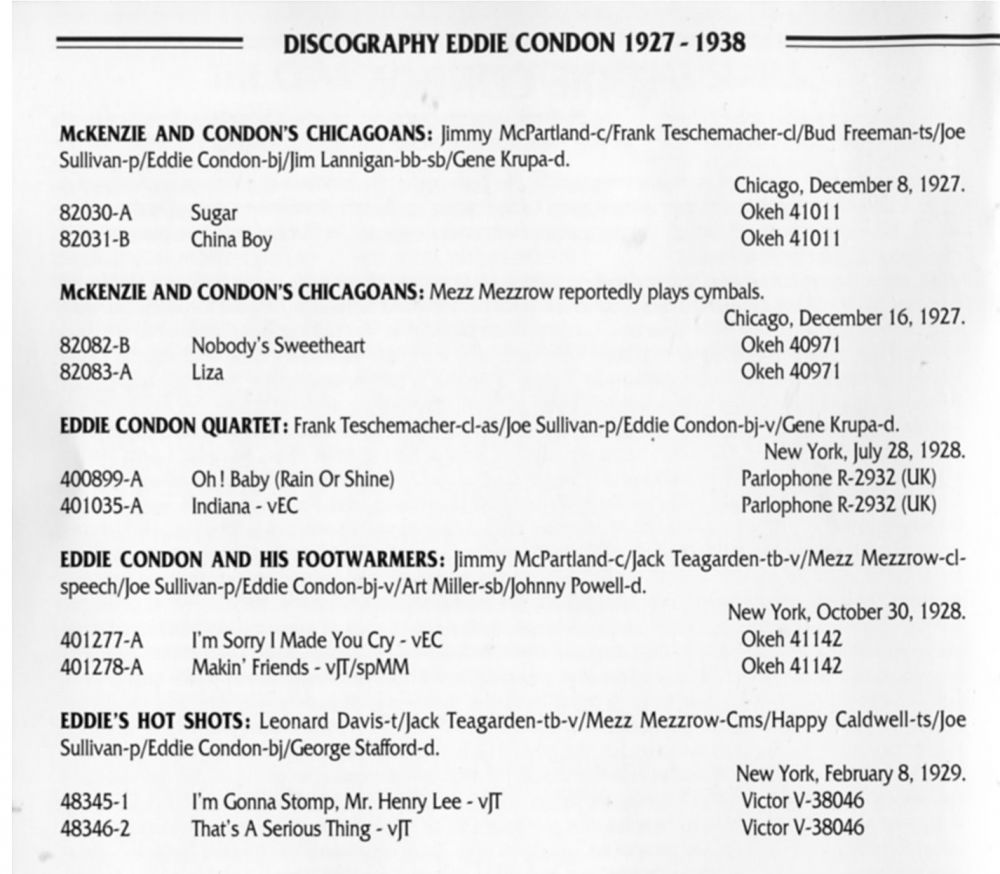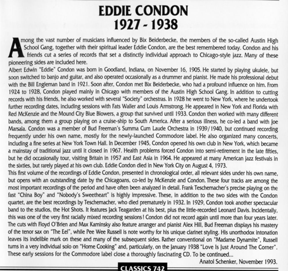 Der Gitarrist, Banjospieler und Bandleader Eddie Condon wurde am 16. November 1905 in Goodland, Indiana, als Albert Edwin Condon geboren und verstarb am 4. August 1973 im Mount Sinai Hospital in New York City, erst 67-jährig, an einer Knochenkrankheit.