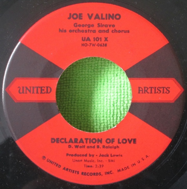 12 57....UA 101 X....JOE VALINO George Siravo his orchestra and chorus..Declaration Of Love (HO-7W-0638)/Legend Of The Lost (HO-7W-0639)