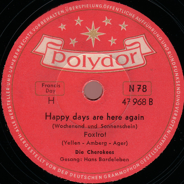 Gesang: Hans Bardeleben..Happy days are here again (Wochenend und Sonnenschein)