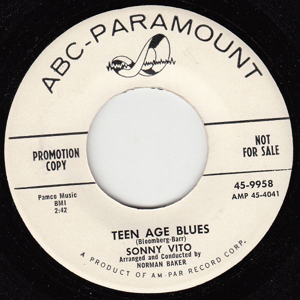 09 58....45-9958....SONNY VITO Arranged and Conducted by NORMAN BAKER..Cameo Ring (AMP 45-4040)/Teen Age Blues (AMP 45-4041)