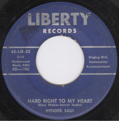 ?? 56....45—106....HENDER SAUL..Hard Right To My Heart (45 LIB 33)/Revolving Door (45-LIB-34)
