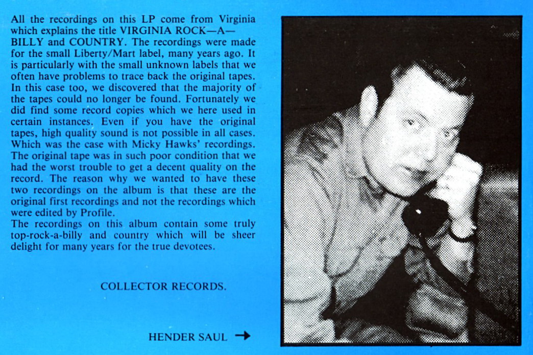Noch ein Hinweis für Schellack-Fans: Als Ted Prillaman etwa 1949 in Salem, Virginia, sein LIBERTY (ab 1957 LIBERTY TONE)-Label gründete, gab es mit der Nummer 301 auch eine Schellack mit Hender Saul.