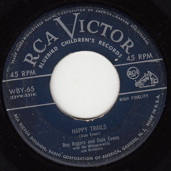 11 57....WBY-65....Roy Rogers and Dale Evans with the Whippoorwills and Orchestra..Happy Trails (E2VW 5314)/Roy Rogers (King of the Cowboys) with Orchestra..The Yellow Rose Of Texas (D7VW 1098) (47-4709/48-0009)