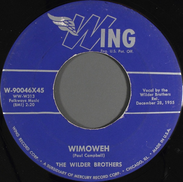 12 55....W-90046X45....THE WILDER BROTHERS..Love That Melody (WW-W316)/Wimoweh (WW-W313)