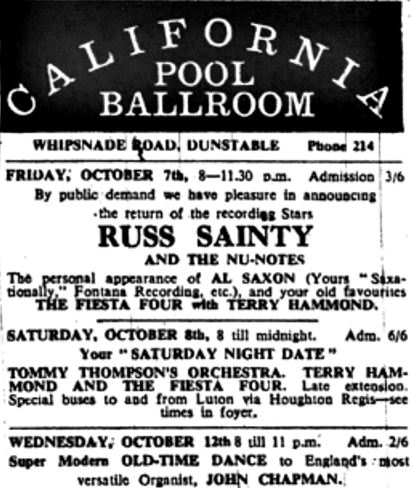 Edwin Green baute sich damals einen Ballsaal in Dunstable. Er sollte California Pool Ballroom heißen, und er brauchte ein paar Acts. Damals war es üblich, dass ein Veranstaltungsort eine Hausband hatte, und als Edwin Russ sah, bot er ihm die Stelle an. Russ nahm zusammen mit Rhet Stoller, Bernie Martin, Mel Miller und Roy Toft – The Nu-Notes – an. Die ersten Proben fanden inmitten von Bauarbeitern und Zimmerleuten statt, doch am 12. März 1960 öffnete das California seine Türen, und Russ stand mit Ronnie Carroll und dem Ray Miller Orchestra auf der Bühne.