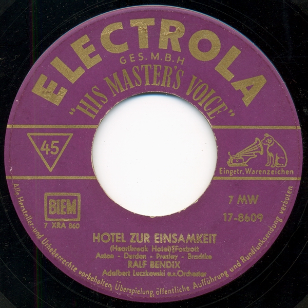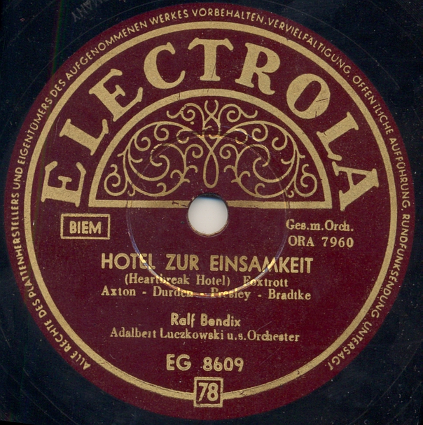 Some six months later the Presley classic 'Heartbreak Hotel' written by Mae, Tommy Durden and 'Elvis' was committed to eternal wax