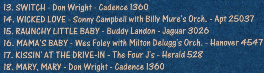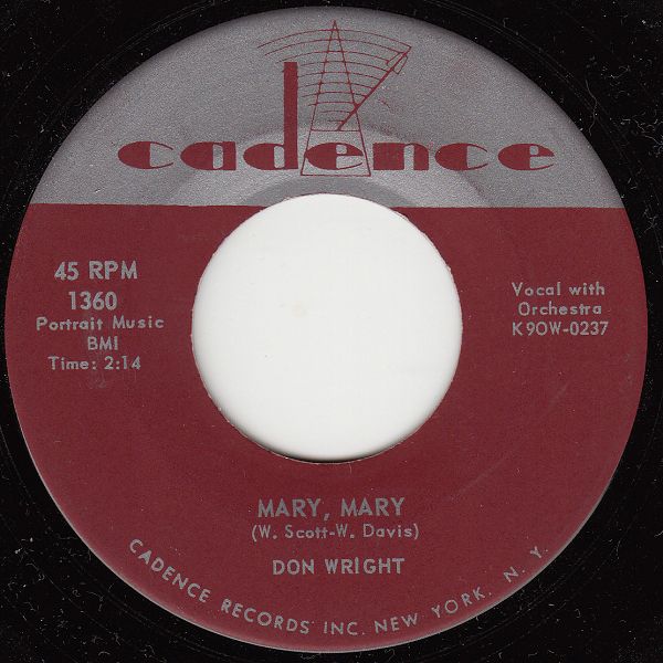 Leider konnte ich nicht feststellen, ob jener Don Wright, der in den USA im März 1959 mit einer einzigen Single auf CADENCE auftauchte, ein Kanadier war und möglicherweise ein Zusammenhang mit der Kanadierin Priscilla Wright besteht (links klicken). Priscilla's 1908 geborener Vater hieß nämlich auch Don Wright und begleitete seine singende Tochter mit seinem Septett bzw. Orchester bei ihren Plattenaufnahmen.