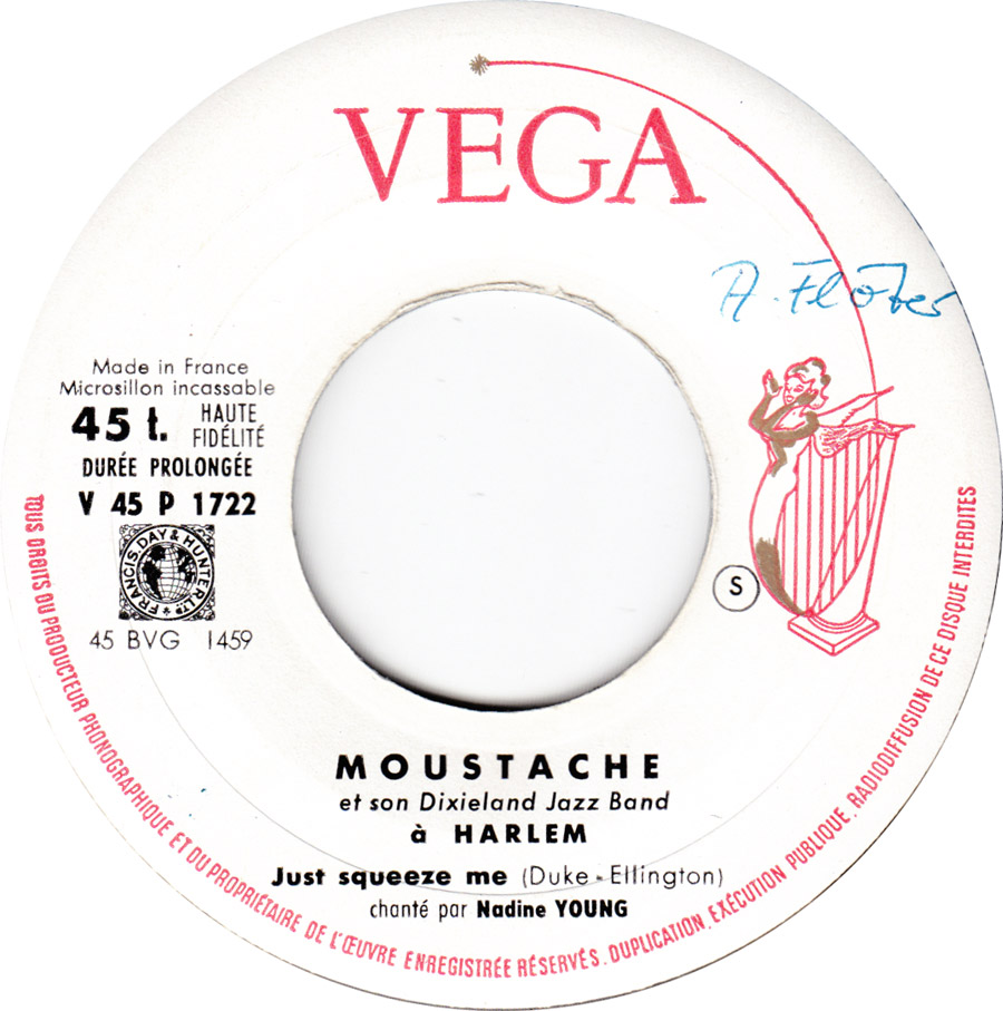 ?? 57....V 45 P 1722....MOUSTACHE et son Dixieland Jazz Band à HARLEM - chanté par Nadine YOUNG..Just squeeze me (45 BVG 1459)/MOUSTACHE et son Dixieland Jazz Band à HARLEM - chanté par Nadine YOUNG..Frankie and Johnny - MOUSTACHE et son Dixieland Jazz Band à HARLEM..Stomping at the Savoy (45 BVG 1460)