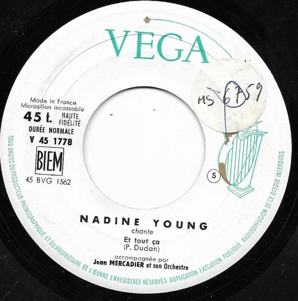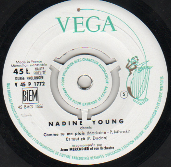 ?? ??….V 45 1778….NADINE YOUNG chanté accompanée par Jean Mercadier et son Orchestre..Comme tu me plais (45 BVG1561)/Et tout ça (45 BVG1562)