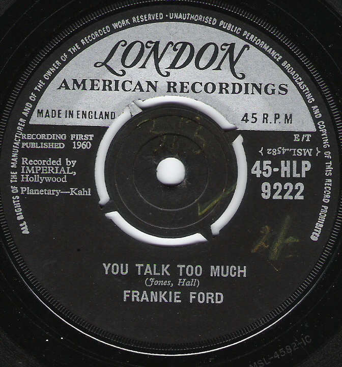 als 'n echten Hamborger Jung bin ich für Maritimes immer zu haben. Hie noch ein paar Singles von Frankie Ford. Dabei natürlich "Sea Cruise". Eigentlich war diese Nummer von Huey "Piano" Smith & the Clowns eingespielt worden, aber der Eigner von Ace-Records Johnny Vincent wollte einen weißen Jungen als Teen-Idol etablieren. So ließ er über "Sea Cruise" und "Roberta", Frankie Fords Stimme aufnehmen und fügte bei dem ersten Song noch eine Schiffsglocke und ein Nebelhorn dazu - und fertig war eine Novelty-Nummer, die es Anfang 1959 in die Top Twenty der Billboard Pop Charts schaffte. Man muss aber zugeben, dass Frankie Ford seine Sache wirklich sehr gut machte und das Nebelhorn als Verstärkung der Bläser-Section einen Super-Effekt erzielt.